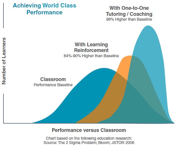 People who have been coached one-on-one, outperform 98% of their peers who have been trained in the classroom alone. Learning reinforcement tools have produced a 90% performance difference.