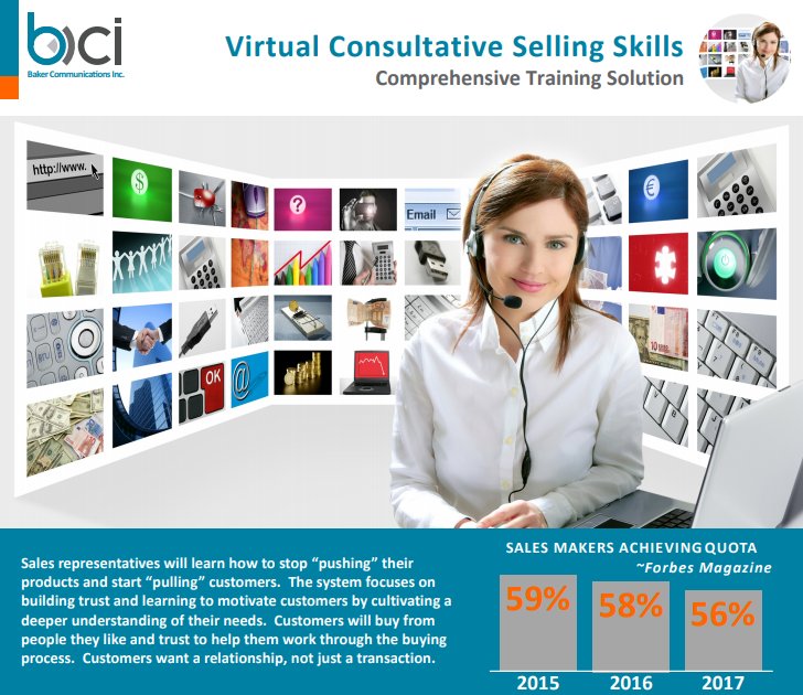 Sales representatives will learn how to stop “pushing” their products and start “pulling” customers. The system focuses on building trust and learning to motivate customers by cultivating a deeper understanding of their needs. Customers will buy from people they like and trust to help them work through the buying process. Customers want a relationship, not just a transaction.