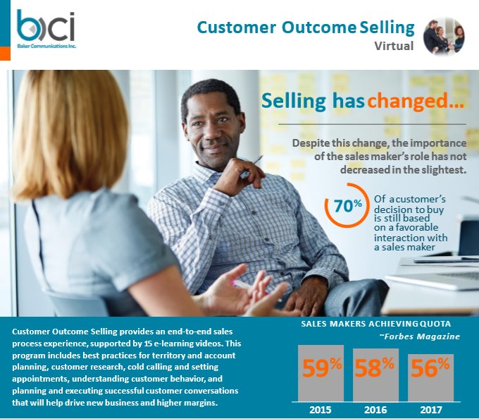 Our Customer Outcome Selling training is available in a variety of formats to best match your needs. Click the Delivery Methods below to learn more.