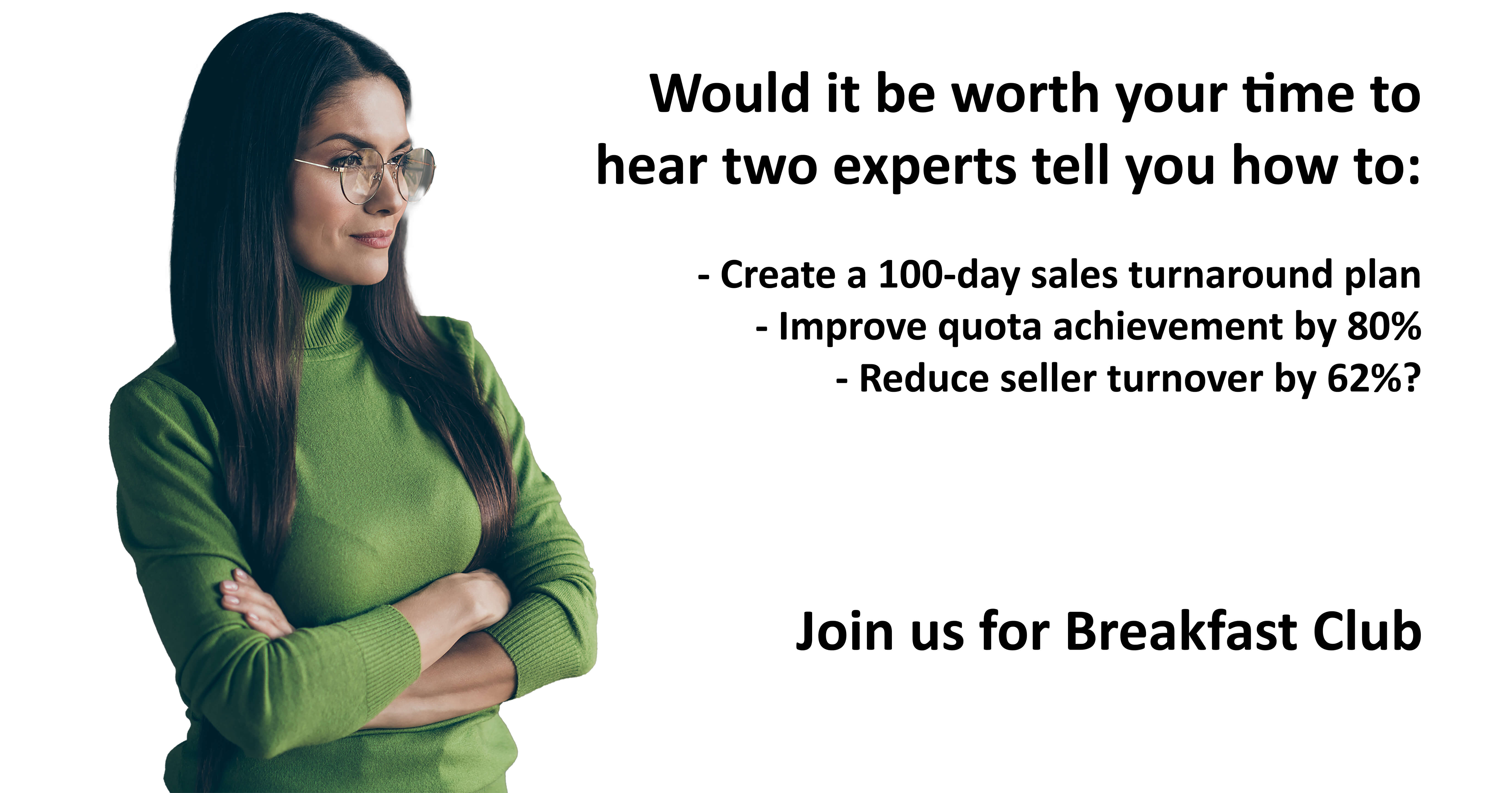 This is our first Breakfast Club and it only seemed fitting to ask one of the top CRO's in the country to join us for an informal chat. Allison Duquette has held CEO, CMO, and CRO roles for multiple marketing-leading software companies, so she brings a multi-faceted perspective to both building and turning around sales teams.