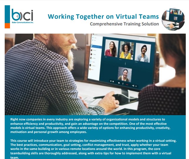 Participants in Virtual Team Building will clarify roles and responsibilities and conduct a sharing and capability audit for the team. Assessing the level of interdependency within the team allows leaders to understand the issues virtual teams face and identify which are most prevalent. At the conclusion of the program, the team will have developed a written communication mandate that supports a newly created team identity.